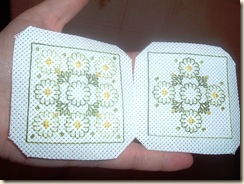 Использованы DMC 94 (зеленый меланж), 307 (желтые серединки), какая-то желто-зеленая Гамма (добавлена к 307му) и бисер noname:)